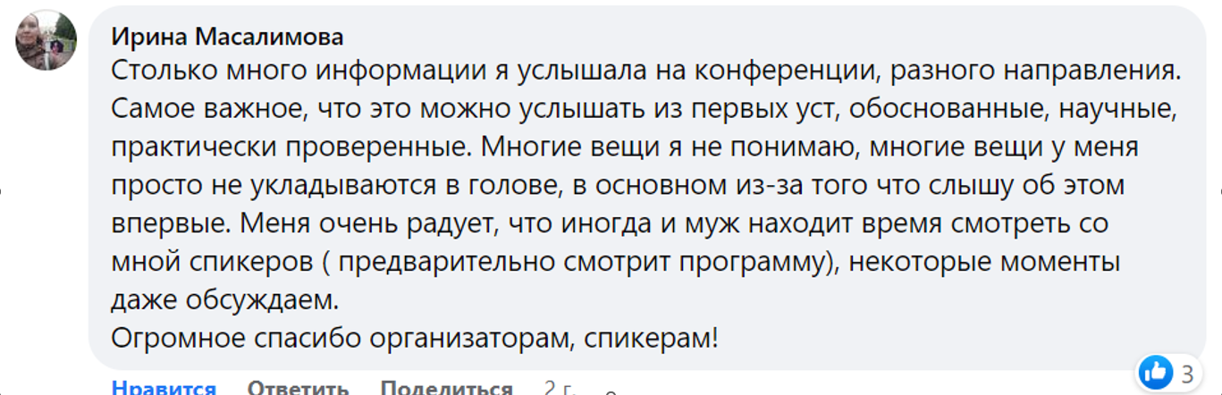 I would be happy to come to help when and in any way you feel us best. I would enjoy to give practical trainings with parents and therapists. I think people have very good and important questions. It is my great honor to come to large-scale conference “Autism. Challenges and Solutions”. I would love to see the work you have done in this last year! You are all very brave and work so hard to make the lives of children better. I would love so much to be helpful to you in your great work."